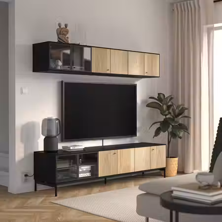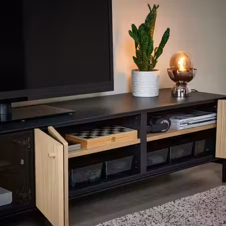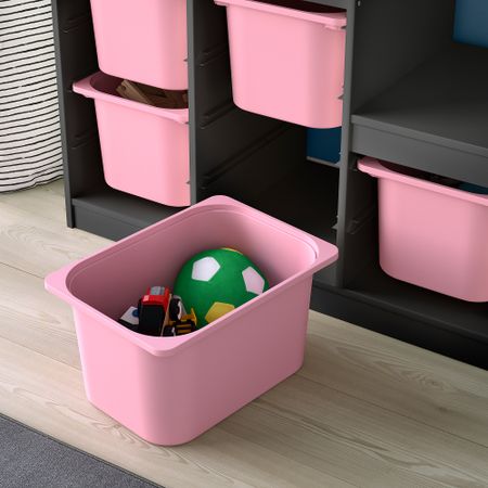 Из каркасов и сетчатых ящиков из серии ТРУФАСТ можно собрать уникальное решение для хранения больших и маленьких вещей во всех комнатах дома. Используйте для хранения площадь стен, особенно если у вас ограниченное пространство.