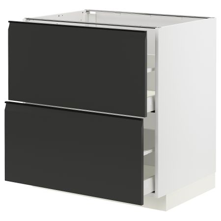 METOD МЕТОД 994.936.30 Напольный шкаф 2 фасада, 2 высоких ящика, белый, Upplöv матовый антрацит, 80x60 см , MAXIMERA МАКСИМЕРА