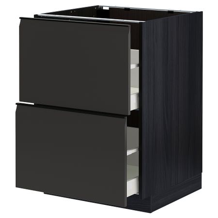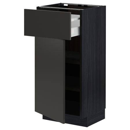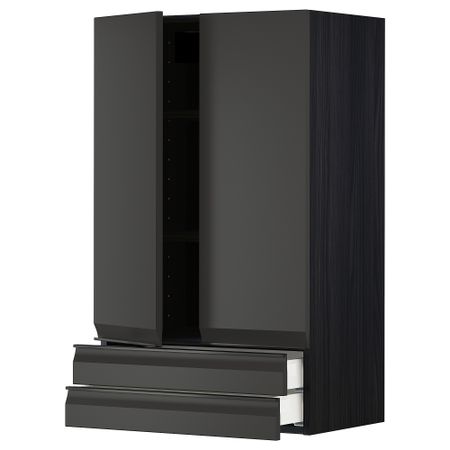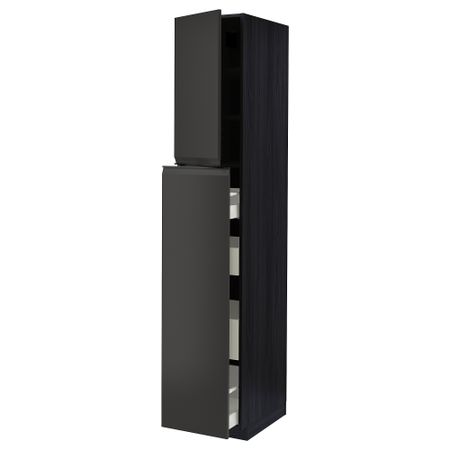 METOD МЕТОД 894.982.56 Высокий шкаф с полками, черный, Nickebo матовый антрацит, 80x37x200 см