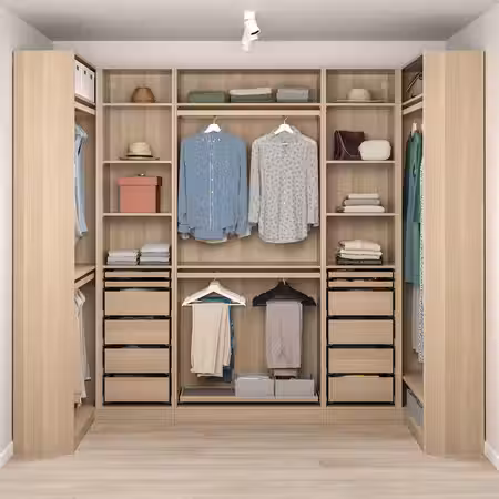 В этом гардеробе найдется отделение для всего на свете. Он подходит для тех, кто привык точно знать, где лежит каждая вещь независимо от ее размера, и при этом сохранять хороший обзор. Демонстрируйте свой идеальный порядок всем