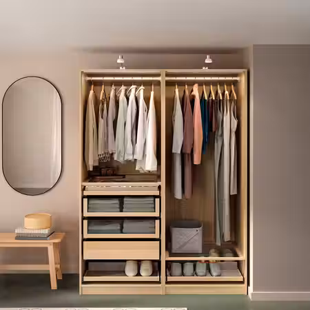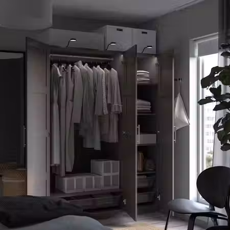 Чтобы придать гардеробу ПАКС завершенный вид, дополните каркас понравившимися панелями.