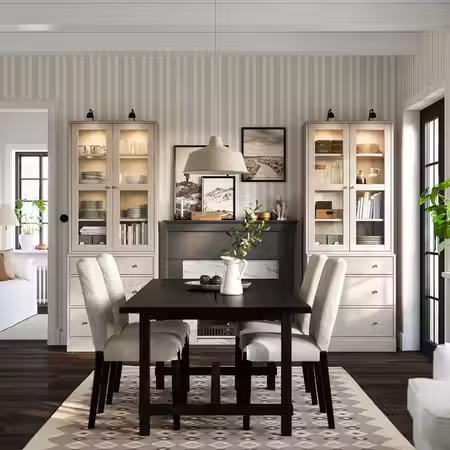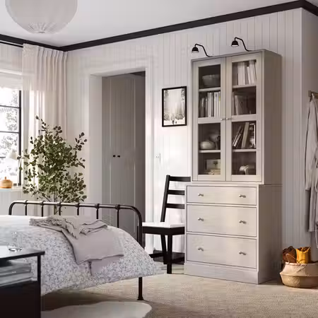 Комплект мебели для спальни ХАУГА в традиционном стиле оснащен всеми современными функциями, чтобы вы могли легко и быстро обустроить спальню. Чтобы расширить возможности для хранения, добавьте вот такой комплект из прикроватной тумбы и комода.