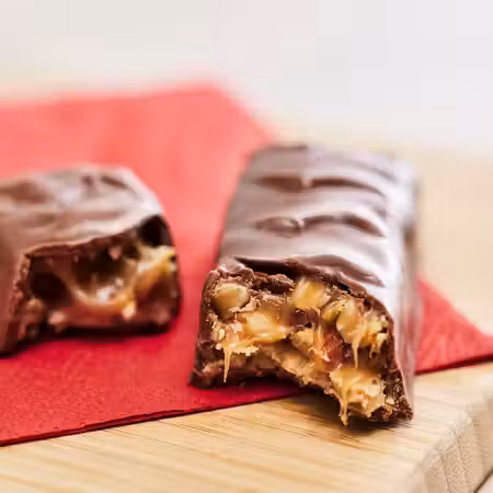 Молочный шоколад, хрустящая слегка соленая миндально-арахисовая начинка и мягкая карамель — интригующее сочетание вкусов.