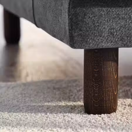 Благодаря ножкам диван выглядит легким и изящным, а во время уборки под ним легко прибраться.
