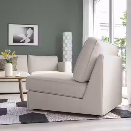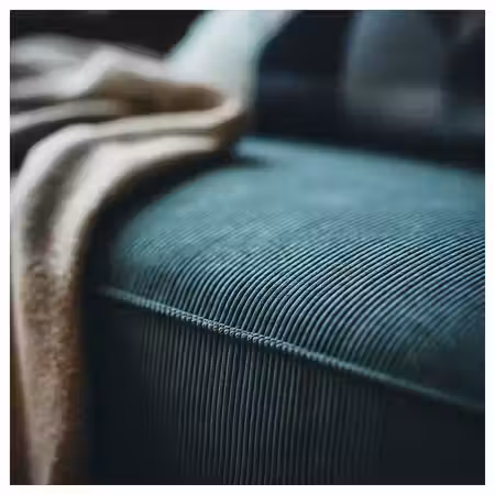 На чехле из вельвета в широкий рубчик комфортно сидеть; мягкая и плотная ткань приятна на ощупь.