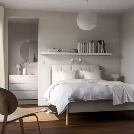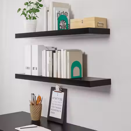 Навесной полочный модуль позволяет максимально эффективно использовать пространство стены, освобождая место на полу.