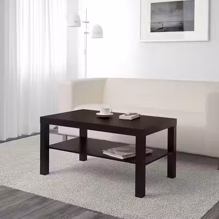 Этот черно-коричневый столик ЛАКК легко сочетать с другой мебелью в интерьере.