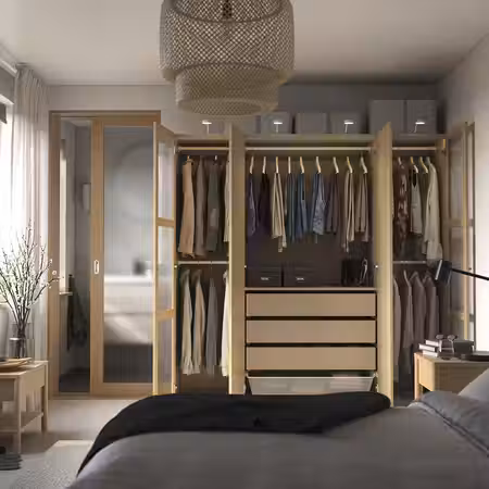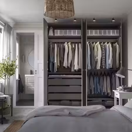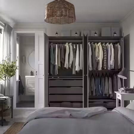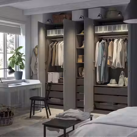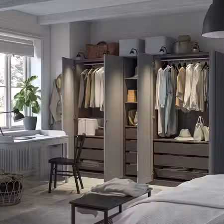 Этот глубокий и широкий гардероб обеспечит место для огромного количества одежды.