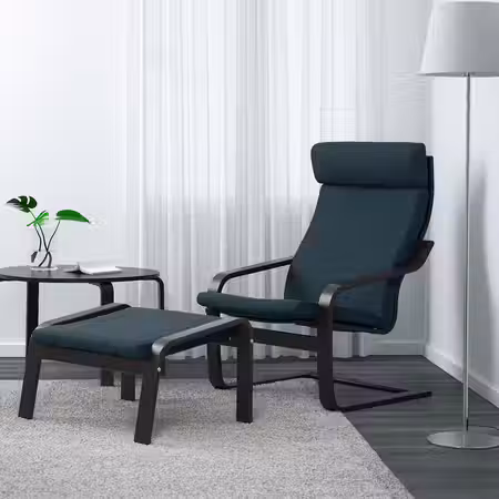 POÄNG Кресло - черно-коричневый/Hillared темно-синий