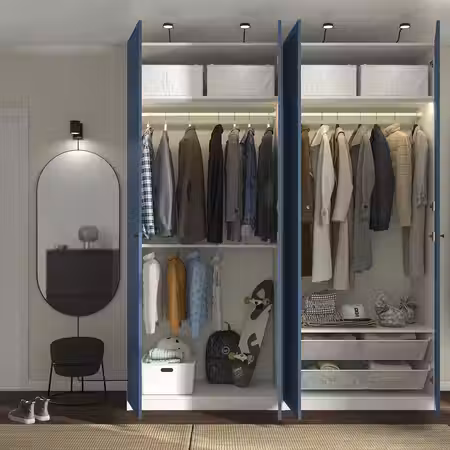 В этом гардеробе найдется отделение для всего на свете. Он подходит для тех, кто привык точно знать, где лежит каждая вещь независимо от ее размера, и при этом сохранять хороший обзор. Демонстрируйте свой идеальный порядок всем