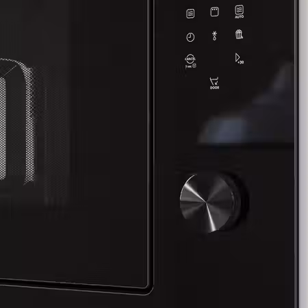 Встраиваемая СВЧ-печь SPJUTBO из серии IKEA 500 сочетает в себе эффектное чёрное дымчатое стекло и массу функций.