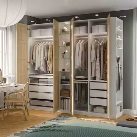 В этом гардеробе найдется отделение для всего на свете. Он подходит для тех, кто привык точно знать, где лежит каждая вещь независимо от ее размера, и при этом сохранять хороший обзор. Демонстрируйте свой идеальный порядок всем