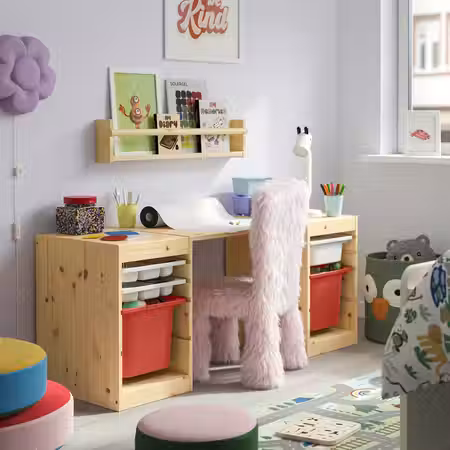 Крепкий стол из сосны, где поместятся все принадлежности для творчества и где ребёнок может проявить свои творческие способности с помощью всевозможных поделок и игр.