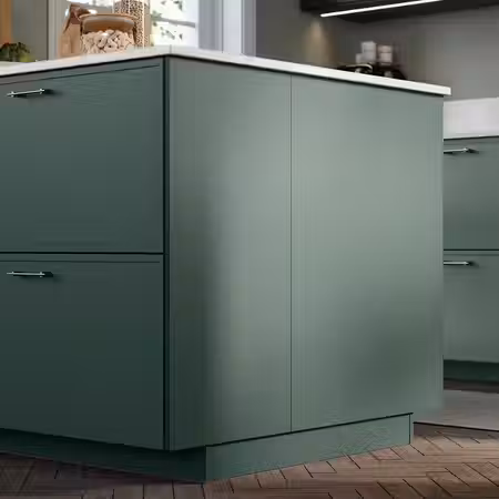 Выберите накладную панель, подходящую по дизайну к дверцам кухонных шкафов, или используйте контрастный вариант отделки панели.