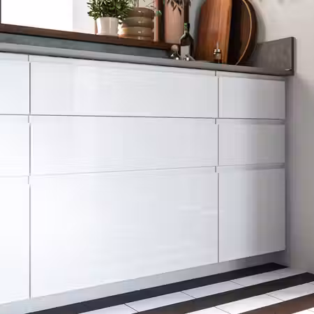 Фасады ВОКСТОРП с белой глянцевой поверхностью создают чистый, современный вид и дарят ощущение света и простора.