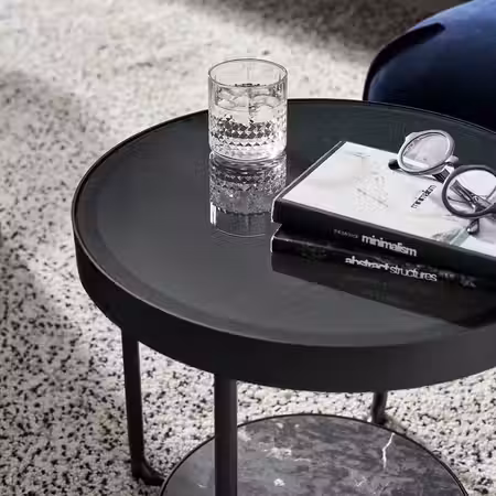 Круглая форма и сочетание разных материалов создают динамичный, но сбалансированный облик.