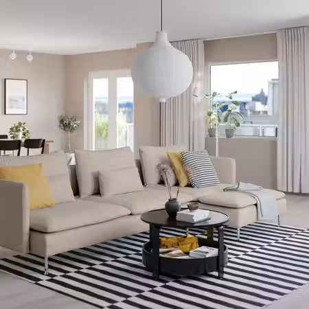 Наша любимая мягкая мебель ЭКТОРП с комфортными подушками отличается нестареющим дизайном.