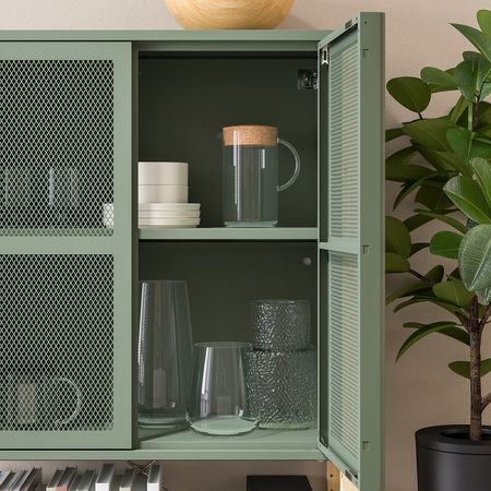 Эти бамбуковые дверцы позволят создать закрытое решение для хранения в кухне или гостиной и придать стеллажу ИВАР новую выразительность.