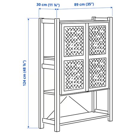 Эта вместительная комбинация для хранения ИВАР с дверцами из бамбука оснащена открытыми и закрытыми полками.