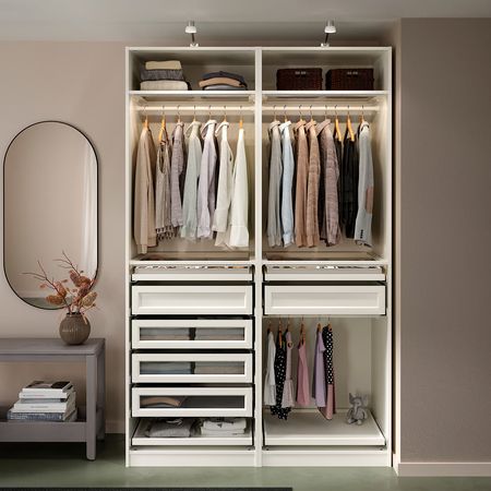 Если вы хотите дополнить каркас гардероба ПАКС раздвижными дверьми, высота потолка должна быть минимум 242 см.