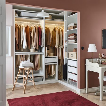 Если вы хотите дополнить каркас гардероба ПАКС раздвижными дверьми, высота потолка должна быть минимум 242 см.