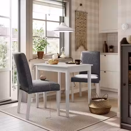 Создайте уникальную обеденную зону с серией SKÅLSTA, комбинируя сиденья с каркасами стульев и столешницы с ножками для стола, либо просто выберите готовый комплект.