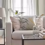 Можно дополнить подголовником ВИМЛЕ, чтобы сделать спинку дивана выше и обеспечить комфортную опору для шеи.