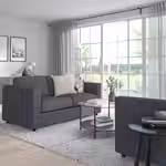Можно дополнить подголовником ВИМЛЕ, чтобы сделать спинку дивана выше и обеспечить комфортную опору для шеи.