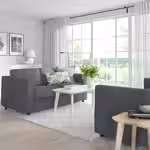 Можно дополнить подголовником ВИМЛЕ, чтобы сделать спинку дивана выше и обеспечить комфортную опору для шеи.