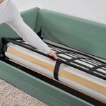 Уберите подушки сиденья и спинки, вытащите подрамник, и ваш диван быстро превратится в просторную, удобную кровать. Идеальное спальное место для вас или ваших гостей.