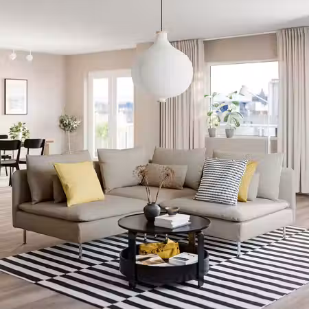 Модули одинаково хорошо смотрятся со всех сторон, поэтому диван можно придвинуть к стене или поставить по центру комнаты.
