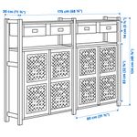 Эта просторная комбинация для хранения ИВАР прекрасно подойдет как для гаража, так и для гостиной или коридора. Вы можете сложить вещи в ящики или шкаф с сетчатыми дверцами, а часто используемые предметы хранить на деревянных полках.