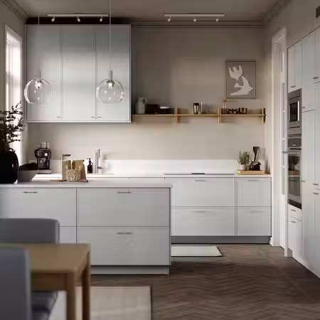 Дополните фасадами ХАВСТОРП светло-серого цвета, чтобы создать современный, спокойный и гармоничный интерьер.