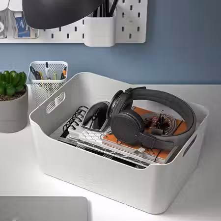 Этот многофункциональный контейнер подходит для хранения разных мелочей, а благодаря ручкам его удобно переносить.