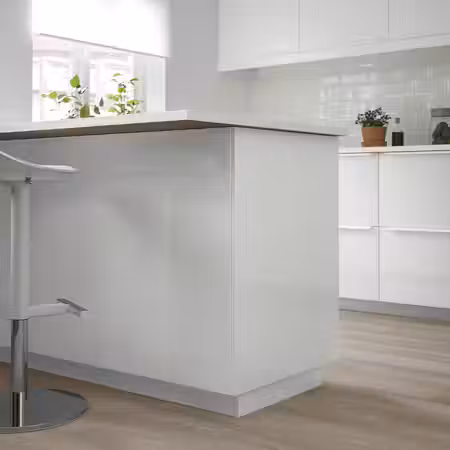После установки новых кухонных шкафов используйте накладной уголок, чтобы закрыть промежуток между шкафом и стеной.