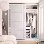 Если вы хотите дополнить каркас гардероба ПАКС раздвижными дверьми, высота потолка должна быть минимум 205 см.