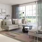 Мягкая мебель серии СОДЕРХЭМН с комфортным низким и глубоким сиденьем и незакрепленными подушками спинки для оптимальной поддержки.
