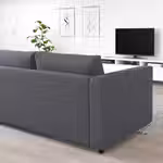 Можно дополнить подголовником ВИМЛЕ, чтобы сделать спинку дивана выше и обеспечить комфортную опору для шеи.