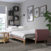 Легко превращается в двуспальную кровать.