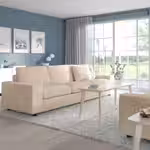 Можно дополнить подголовником ВИМЛЕ, чтобы сделать спинку дивана выше и обеспечить комфортную опору для шеи.