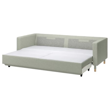 На упругих подушках дивана удобно сидеть, а деревянные рейки в конструкции повышают уровень комфорта во время сна.