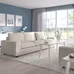 Можно дополнить подголовником ВИМЛЕ, чтобы сделать спинку дивана выше и обеспечить комфортную опору для шеи.