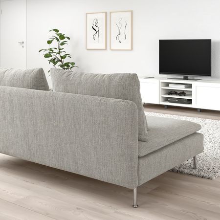 Мягкая мебель серии СОДЕРХЭМН с комфортным низким и глубоким сиденьем и незакрепленными подушками спинки для оптимальной поддержки.