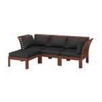 3-местный модульный диван, садовый, с табуретом для ног коричневая морилка/Холло черный 143/223x80x78 см IKEA ЭПЛАРО