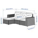 Ширина:223 см Глубина:144 см Высота:84 см Ширина сиденья:187 см Глубина сиденья:56 см Высота сиденья:40 см Размер и вес упаковки 12 упаковки подлокотник для садовой мебели SOLLERÖN Номер товара: 103.864.