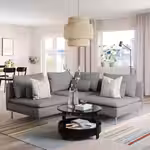 Мягкая мебель серии СОДЕРХЭМН с комфортным низким и глубоким сиденьем и незакрепленными подушками спинки для оптимальной поддержки.