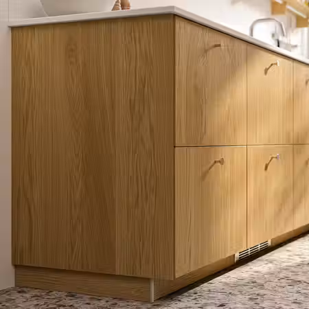 Эта декоративная планка идеально сочетается с матовыми фасадами УППЛЁВ бежевого цвета, позволяя вам создать единый гармоничный интерьер кухни.