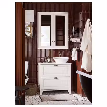 Фасады СТЕНСУНД белого цвета привносят нотку загородной жизни — благодаря обрамленной передней части и рифленым панелям, создающим непринужденный ремесленный стиль.
