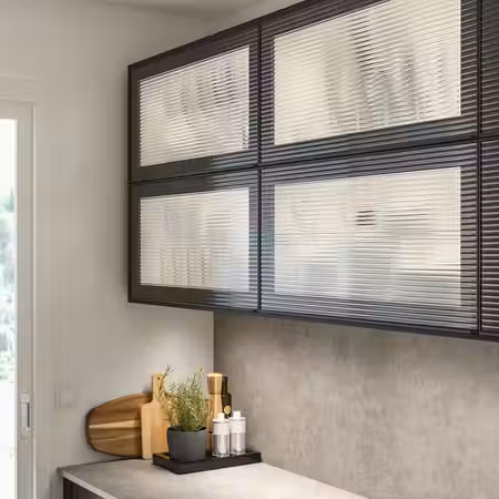 Стеклянная дверца ХЭЙСТА с черной рамой выглядит красиво и необычно.