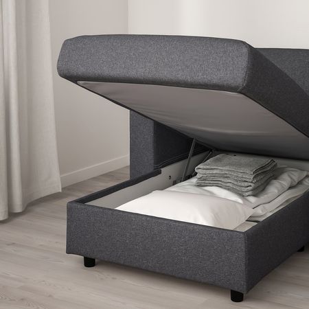 Можно дополнить подголовником ВИМЛЕ, чтобы сделать спинку дивана выше и обеспечить комфортную опору для шеи.
